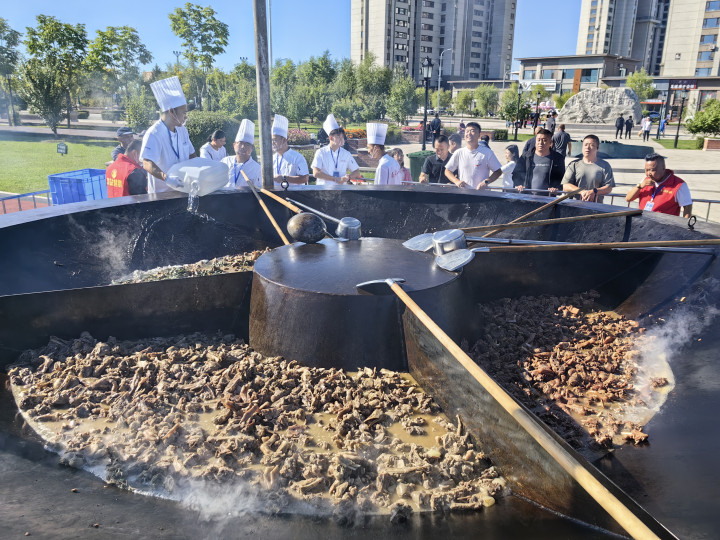 ↑美食区的铁锅炖大鹅。新华社记者 王君宝 摄