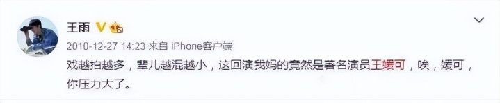 转眼到了2010年底,两人再一次在片场相遇,这一次王媛可却成为了王雨的“妈妈”。