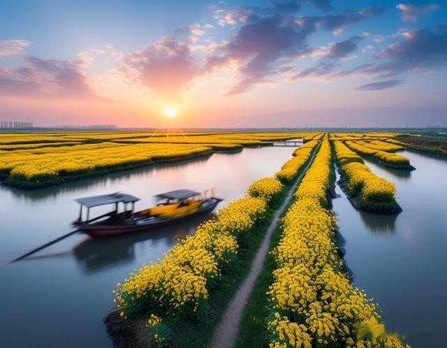 我特地翻了超多资料,发现这村子的故事也太绝了!8年前还是"村舍乱、河水脏"的普通水乡,现在居然靠"碧水花海"火遍全球。清晨的东罗村特别有意思,河面上飘着薄雾,保洁员江阿姨提着吸尘器去民宿打扫,对岸村民在垛田上锄草,撑船的大爷慢悠悠清理河道,咖啡馆里传来磨豆子的声音——你敢信这是苏北农村的日常?