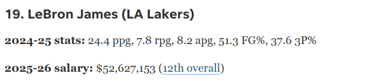 可以看到,相比较ESPN的榜单,HoopsHype的评选有很大区别。其中上赛季最大赢家亚历山大高居第一位,约基奇排名第二位,东契奇的排名也低于字母哥。此外,三位老将都没有入选前10 ,库里排名第11位,詹姆斯排名第19位,杜兰特更是仅排名第22位。