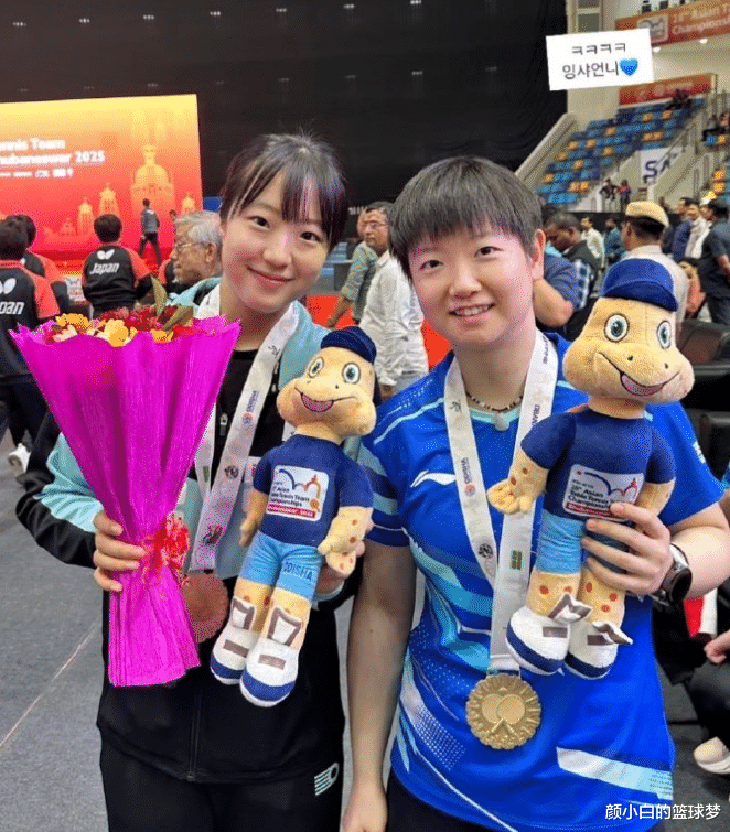 颁奖典礼后申裕斌找到了中国队的多位球员进行了贴贴,蒯曼与申裕斌的合影两人都是肉嘟嘟脸超可爱。