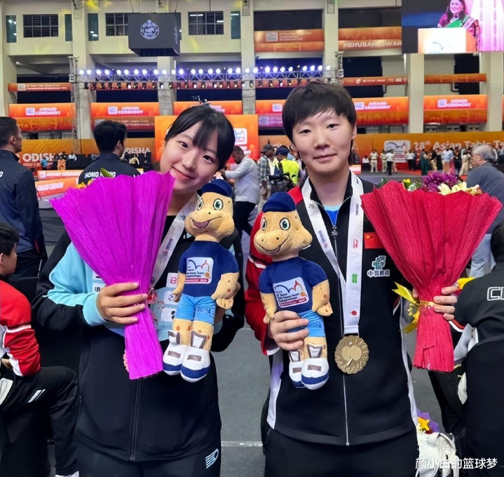 2025年印度乒乓球团体亚锦赛女团颁奖典礼,进入四强的韩国队上领奖台,可爱的申裕斌成为亮点,因为亚锦赛不设3-4排位赛所以韩国队本次亚锦赛女团是铜牌,申裕斌已经挺开心了,这是2023年平昌亚锦赛后时隔两年再入进入半决赛。