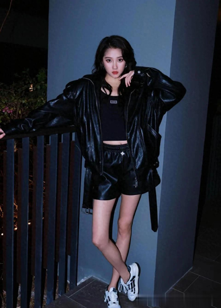 关晓彤换风格后气质大变! 穿黑色皮衣+短裤, 时髦洋气又高级!