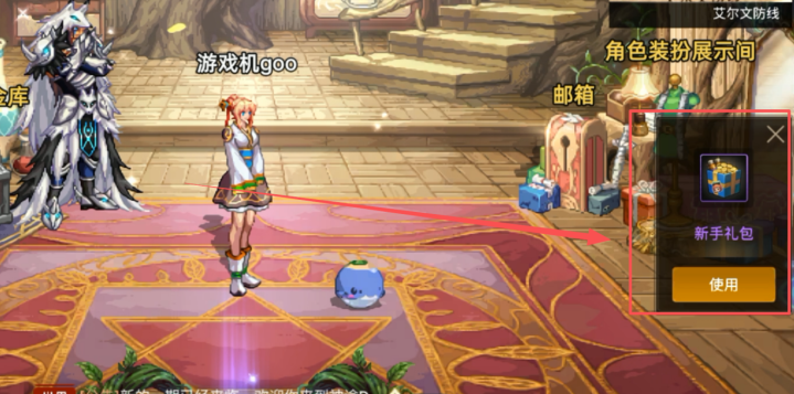 进到游戏里,先看右下角提示的“新手礼包”,点击“使用”打开它,还有很多其他的物资。